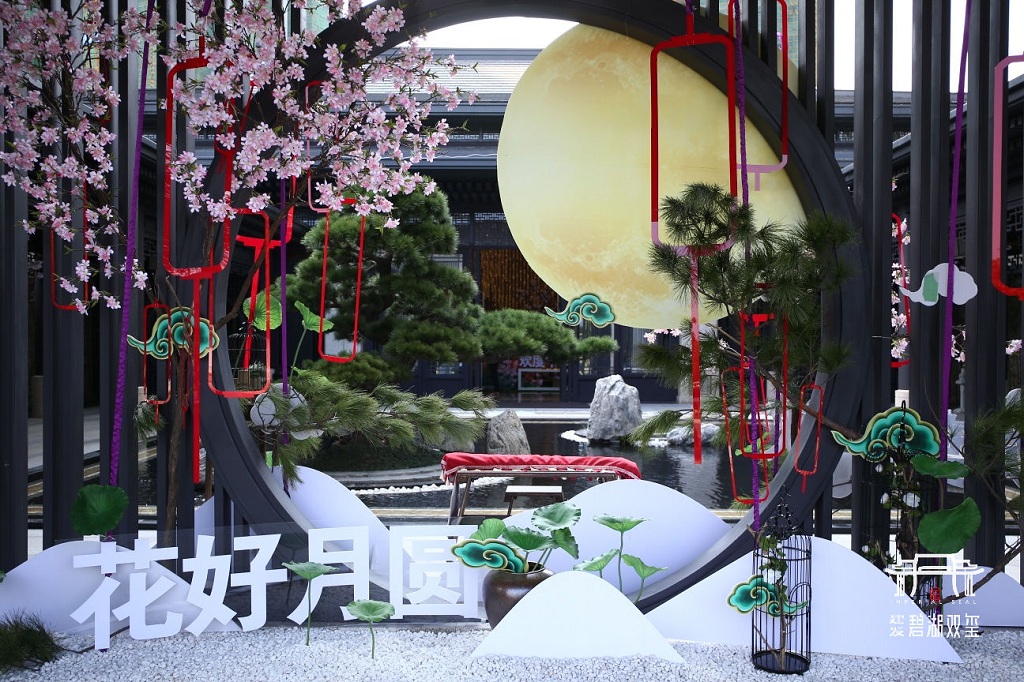 古樸雅致的“花好月圓”入口堆陳、琳瑯滿目的連廊花燈,陳陳箏音在古香古色的碧湖雙璽售樓部悠揚回蕩,余音繚繞,仿佛置身古時的賞燈花節(jié)。靈動仙氣的嫦娥使者在門口歡快地迎接每一位嘉賓。新中式古典奢雅的復古美陳,玉盤珍饈和精致花藝的唯美搭配,從細節(jié)處重現(xiàn)極致的東方神韻,一場奇幻美妙的東方穿越之旅從此開啟。