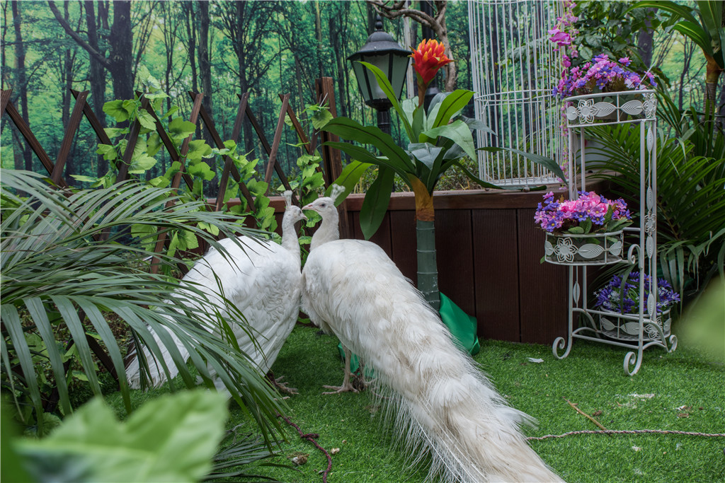 鳥中之王白孔雀、長腿鴕鳥、會說話的鷯哥、血玉金絲雀、鳳凰鳥、貴妃雞、珍珠雞……平時難見的珍稀鳥類,在半山御園園區(qū),一展身姿?;蛏衩?、或高貴、或美艷、或可愛的身影,不斷的閃現在來賓面前,一種與稀有生命近距離接觸的興奮散逸開來,讓幸福難以言表。