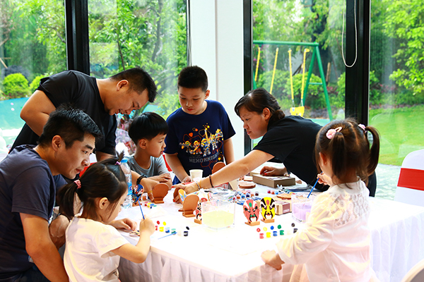 醒木一響,折扇一拂,建發(fā)中泱天成國(guó)韻堂會(huì)歡樂開場(chǎng)。福建省優(yōu)秀曲藝演員于永祺、馬燕飛聯(lián)袂獻(xiàn)藝,戲臺(tái)上妙語(yǔ)連珠,堂間茶盞交錯(cuò),精彩表演博得現(xiàn)場(chǎng)觀眾開懷大笑。堂會(huì)精彩連環(huán),川劇變臉精妙絕倫,現(xiàn)場(chǎng)掌聲雷動(dòng)。欣賞驚奇變臉表演正酣,變化萬(wàn)千的“大花臉”激活賓客無(wú)限想象。在建發(fā)中泱天成堂亦可將五色油彩細(xì)細(xì)把玩,親手繪制創(chuàng)意臉譜。