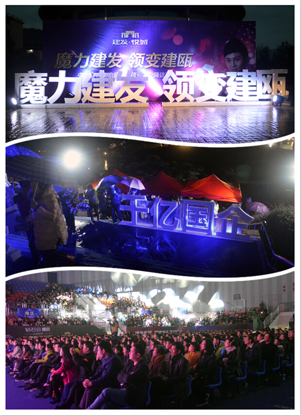 城市禮獻,建甌『建發(fā)·悅城』的魔幻之夜『建發(fā)·悅城』大型魔術(shù)演出為建甌市民演繹一場魔幻盛典!活動期間,更是熱情地投入到搶票大軍中?;顒赢斕旒词勾笥陜A盆,依然擋不住觀眾的熱情,在活動演出前一小時,體育中心門口早已排起了長長的隊伍。