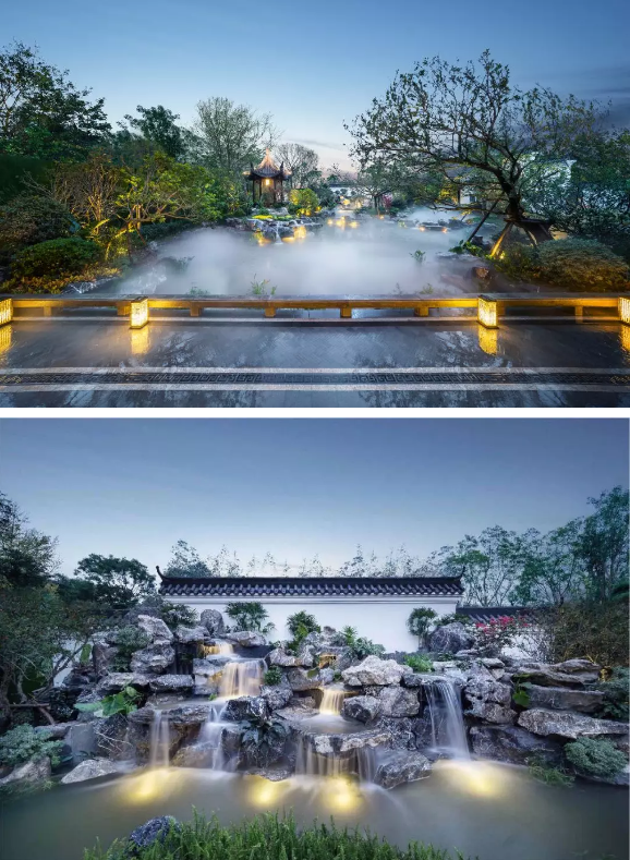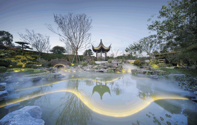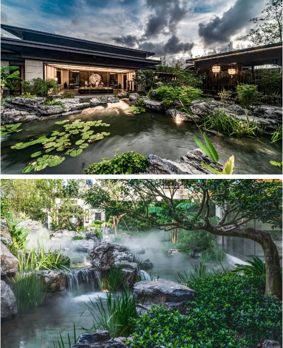 在遵循中國(guó)傳統(tǒng)園林藝術(shù)審美的同時(shí),廈門(mén)央著二期融入了現(xiàn)代家庭休閑活動(dòng)的功能空間,整體呈現(xiàn)出“賞園”、“游園”、“趣園”三重園林空間。