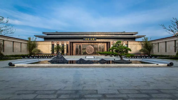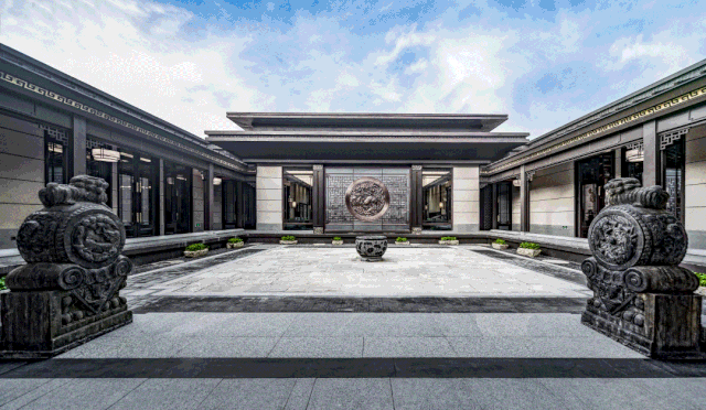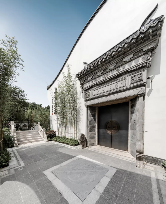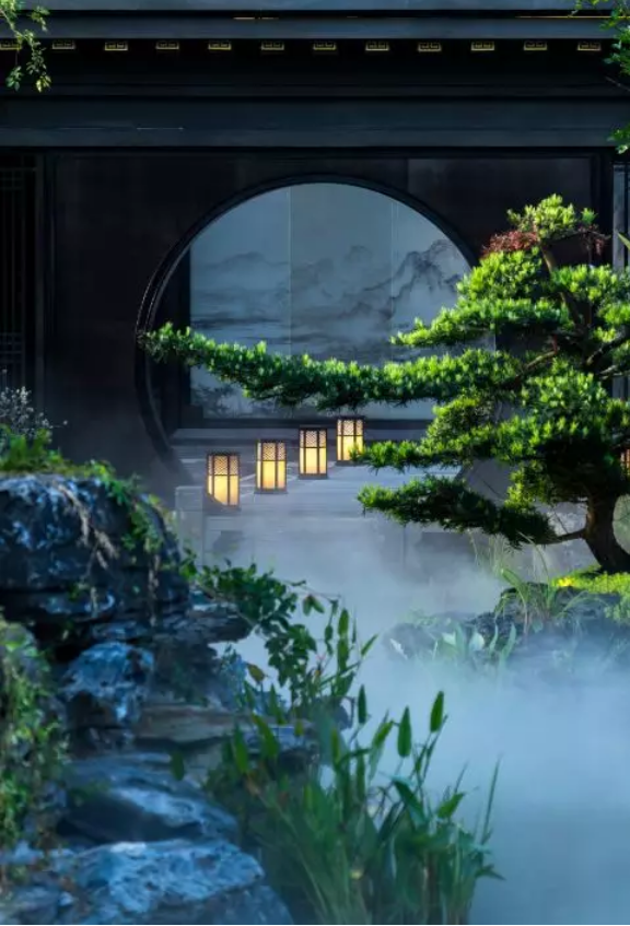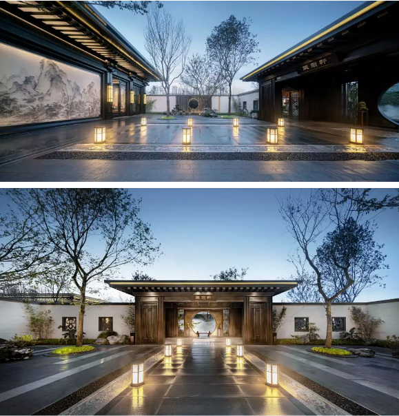 中國(guó)的傳統(tǒng)園林講究門(mén)庭禮制,南京央譽(yù)注入王府形制的威嚴(yán)雄偉。門(mén)頭牌匾由王羲之五十五世傳人王彥宏親筆撰寫(xiě),前場(chǎng)中心的“浮鏡”主題水景,水面上“浮”著的假山和造型松,彰顯山水與人文的優(yōu)雅。