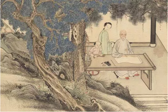 【清】尤詔、汪恭《隨園湖樓請(qǐng)業(yè)圖》(部分)
