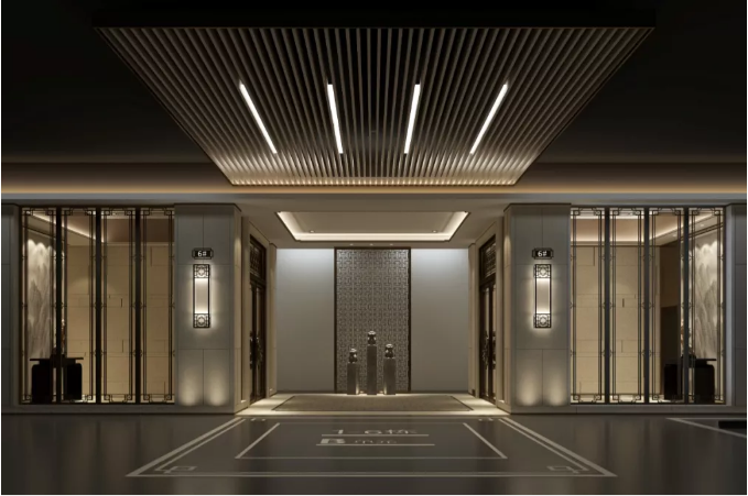 樓棟入口的吊頂增加了燈光設(shè)計(jì),讓你停車入庫(kù),便可快速找到入戶大堂,從容回家。
