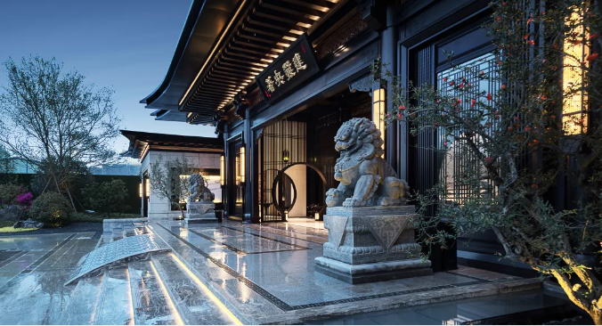 頂端的斗拱結(jié)構(gòu),形成敞開(kāi)懷抱、迎賓納福之勢(shì),加以嚴(yán)謹(jǐn)?shù)膶?duì)稱結(jié)構(gòu),營(yíng)造歸家儀式感。