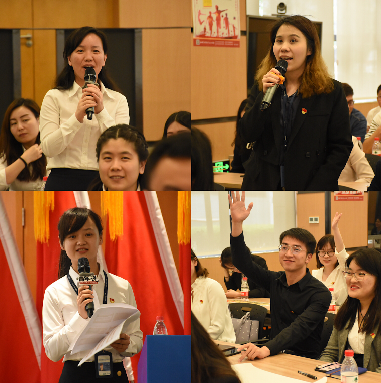 隨后,“悅讀會”主題分享活動正式開始。本次分享選取了《平易近人—習(xí)近平的語言力量》一書。該書輯錄了中共十八大以來,習(xí)近平總書記在各種場合發(fā)表的重要講話中富有特色的引文引言。四位到場的高管站在企業(yè)發(fā)展的角度,摘取了書中四個章節(jié)為大家引讀。隨后,八名青年黨員代表先后現(xiàn)身說法,以見聞有感、微黨課等方式進(jìn)行分享。高管們的引讀鏗鏘有力,青年們的分享感人肺腑,活動現(xiàn)場掌聲不斷。與會人員深刻地感受到了武漢國有地產(chǎn)企業(yè)黨員干部和青年員工們的蓬勃朝氣和昂揚(yáng)姿態(tài)。